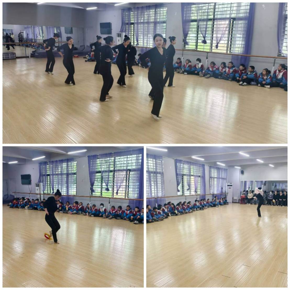 来到“活力加油站”形体体验区,孩子们欣赏了《采桑谣》《春来花自放》《澜水见月圆》三段精彩舞蹈,灵动的舞姿、优美的旋律让孩子们深深沉浸,不仅感受到了舞蹈艺术的魅力,更激发了对形体训练的兴趣。